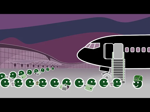 Which gives airlines another good reason to group people. And probably helps explain why they switched away from the older faster method you won’t believe they used to use: [Grey on microphone]: "Hey, everyone. Plane’s here.