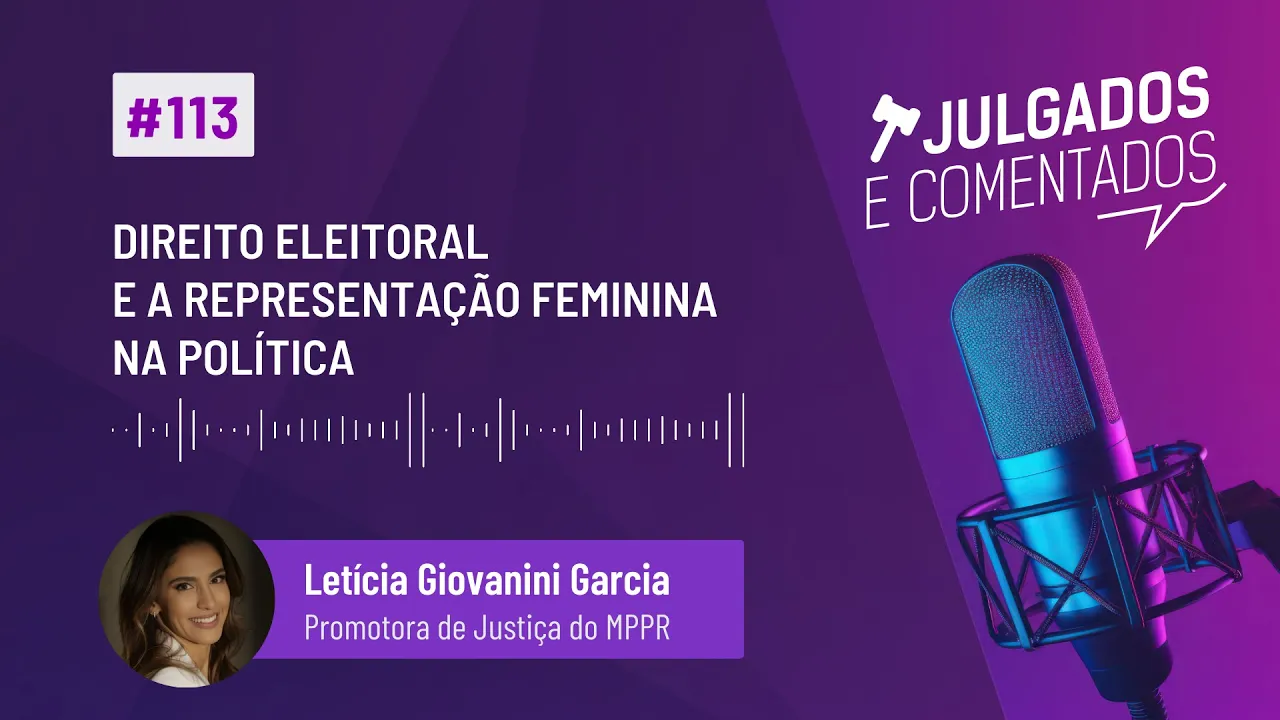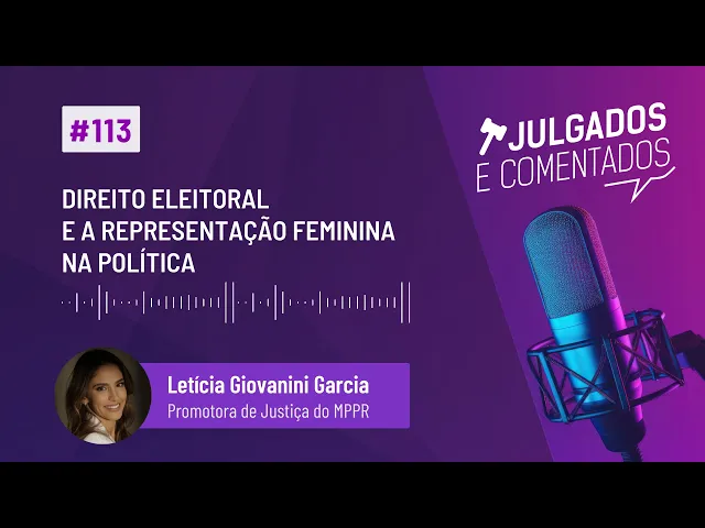 a mesma intensidade e inspiração abordando os temas mais relevantes pro sistema da justiça brasileira que venham muitos outros episódios para o episódio de hoje abordaremos sobre as normativas do Direito Eleitoral referente à representação feminina na política para tanto contamos com a participação da convidada Letícia geovanini Garcia promotora de Justiça do Ministério Público do Paraná o Brasil ocupa uma posição triste na participação feminina no campo político está na posição 134 entre os países do mundo no que diz respeito à participação nos parlamentos nas últimas eleições nacionais em 2022 foram apenas 17 a 5% das vagas na