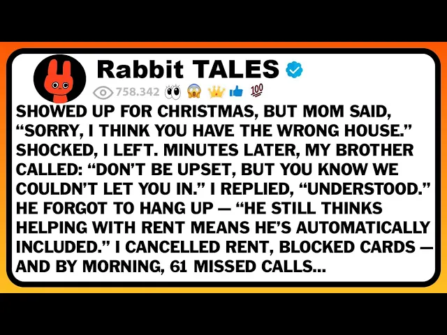 showed up for Christmas, but mom said, "Sorry, I think you have the wrong house. " Shocked, I left. Minutes later, my brother called, "Don't be upset, but you know, we couldn't let you in.