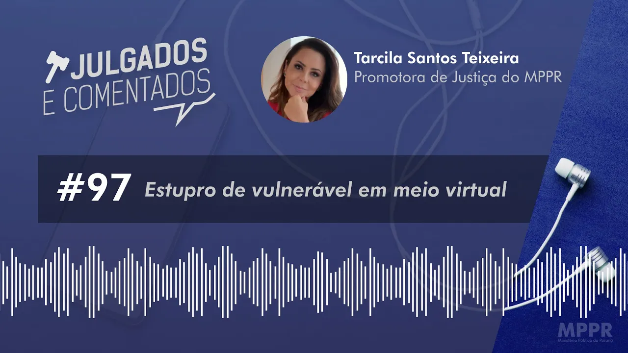 [Música] julgados e comentados a jurisprudência sobre a ótica do Ministério Público [Música] uma produção Ministério Público do Paraná [Música] Olá estamos começando mais um episódio do julgados e comentados eu sou samya Bonavides E hoje vamos abordar o tipo penal estupro de vulnerável artigo 217 a do Código Penal e se eu cometimento pelos meios virtuais com Tarsila Santos Teixeira promotora de Justiça do Ministério Público do Paraná diante das facilidades propiciadas pelas inovações tecnológicas que possibilita maior conectividade entre as pessoas e cria certas facilidades de acesso inclusive nos ambientes mais íntimos o meio digital também se tornou