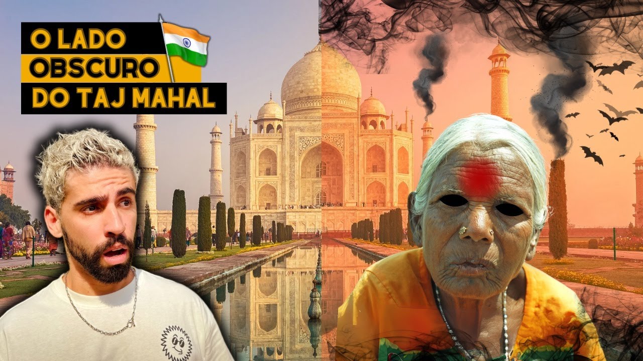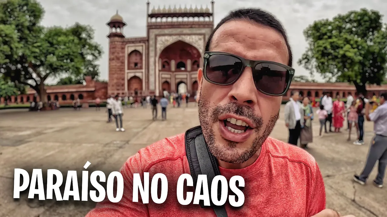 [Música] mais um dia em agra mais um dia aqui nos arredores dele do imponente Taj Mahal se você acompanha o canal sabe que eu e a Clara já visitamos essa região aqui tem um episódio muito legal onde mostramos como é a vida aqui nos arredores desse majestoso lugar então se você não viu clica no crédito que você não vai se arrepender Nós visitamos várias ruelas um bairro aqui em volta tem comida de rua tá bem interessante só que o que a gente veio fazer hoje é aquilo que todo mundo que vem para águia fácil que