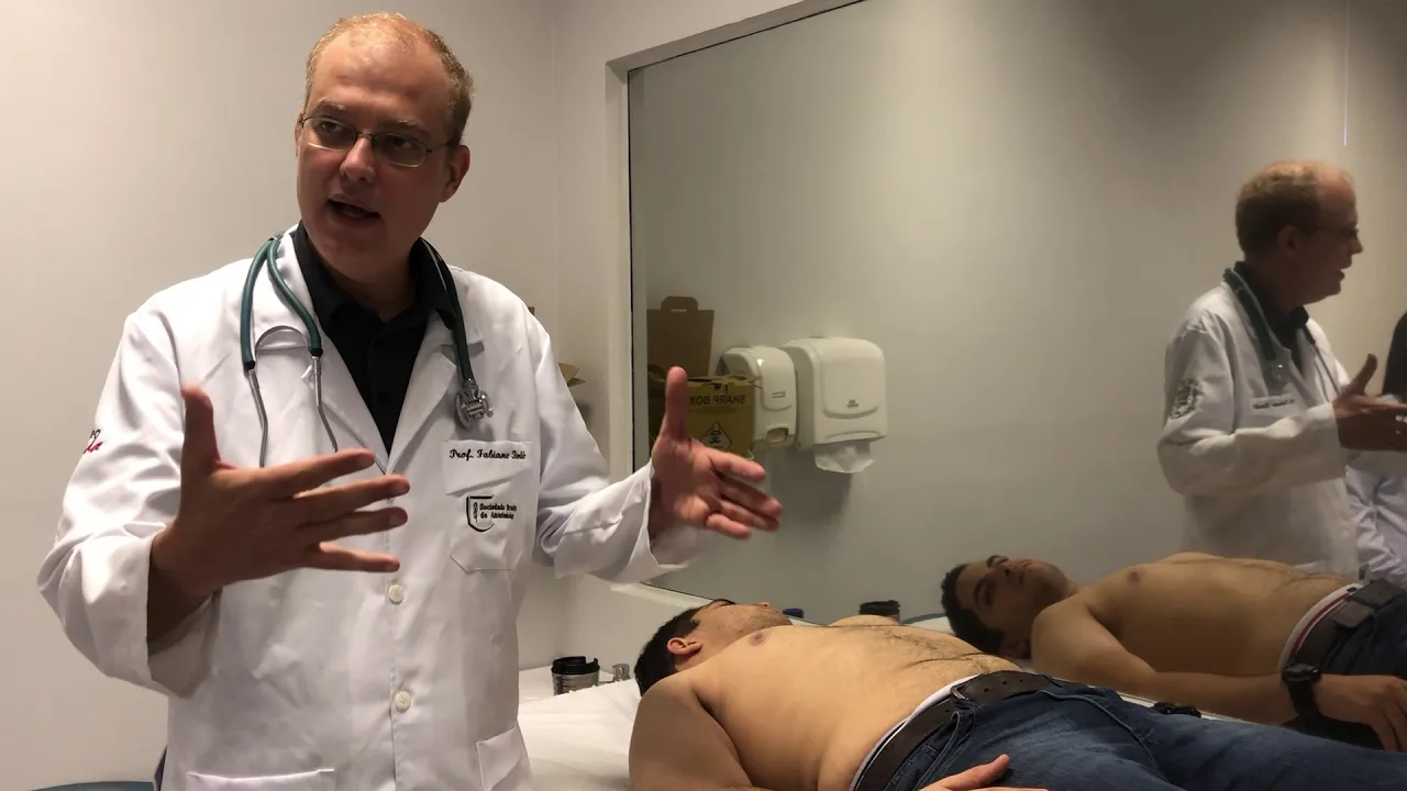 quem faz o exame essa parte aqui o que ele está a cobrir porque como ele é nosso colégio neto vai dizer se tira a roupa essa parte que a gente não tá vendo aqui também abdome não estou dizendo a parte genital não estou dizendo a parte originária essa parte final mas essa parte sim aqui ela também é tom e água então quando você for fazer o exame é preciso que você dislub essa região a camisa também tem que ser retirada se desnudar região e cobrirá parte do genital o que essa parte aqui ela precisa ser