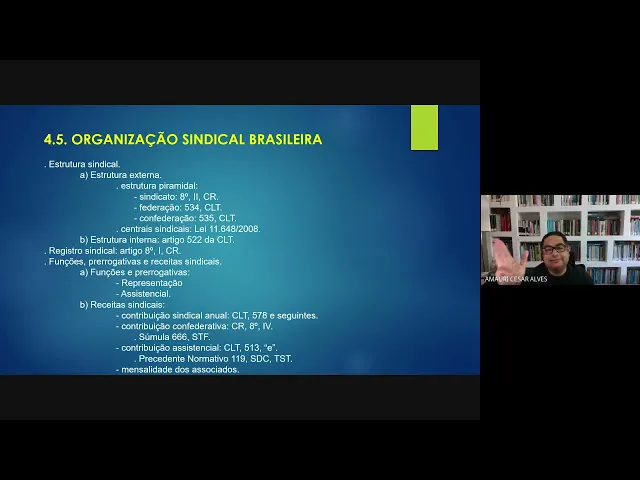 coletiva todos os trabalhadores representados buscaram a cesta básica todos os patrões representados Pagaram a cesta básica é mas na hora de contribuir de pagar o sindicato não só os sindicalizados são hoje obrigado e esse problema do do financiamento sindical da vai render muito porque decorre da reforma e ainda está sendo sentido no bolso né da cruz nos cofres do sindicato mas por enquanto é essa a estrutura EA organização dos sindicatos no Brasil meio ainda doutrina e é suficiente Uma Breve análise doutrinária Por que será que é simples nós ficamos por aqui então agradeço novamente a