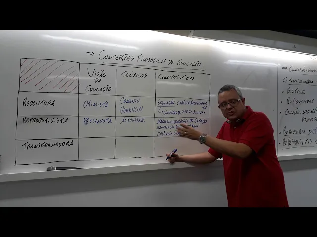 o galera continuando aqui agora vídeo 2 sobre as concepções filosóficas de educação vou tratar agora da concepção reprodutivo vista então a reprodutiva que também pode aparecer lá na prova com crítico reprodutivo vista quem são os critico reprodutivo vistas lento então olha só primeiramente eu quero destacar que a visão reprodutivo lista da educação é uma visão pessimista porque ela é pessimista uma das características chave das teorias reprodutivo listas trata a educação através do seu currículo como sendo que um aparelho ideológico do estado então ó aparelho e ideológico a serviço do estado dominante isso nos remete à