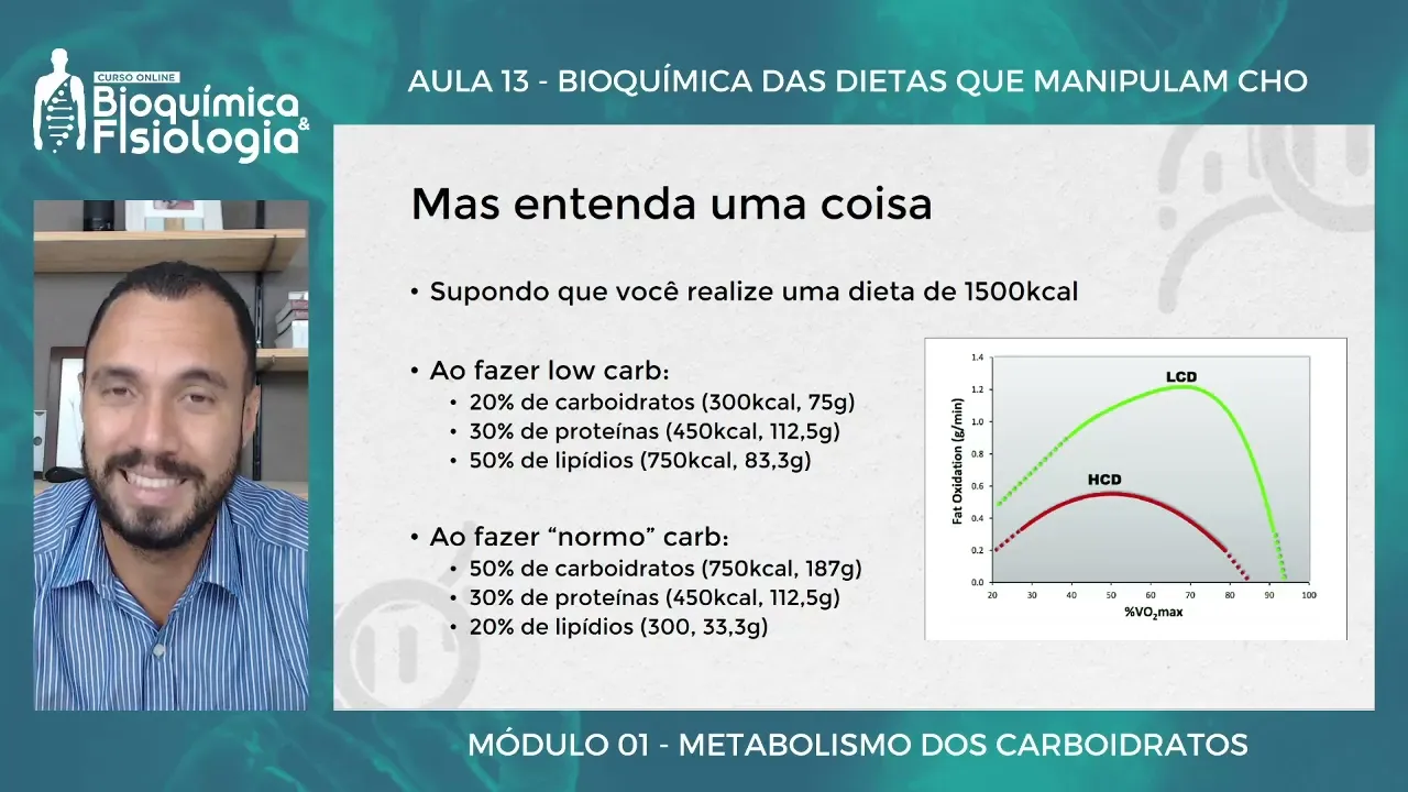Olá pessoal sejam todos bem-vindos a mais uma aula nessa aula nós iremos discutir as dietas que manipulam a ingestão de carboidrato né vamos falar da famosa larb do famoso ciclo de carboidratos né e das suas variações chamado de train low slip low né a gente vai entender o que que acontece quando há essa manipulação essa variação na injeção de carboidratos da dieta A ideia é a gente entender a bioquímica por trás dessa né mas o que que acontece no no ponto de vista metabólico quando você priva o carboidrato do seu paciente isso é ruim isso