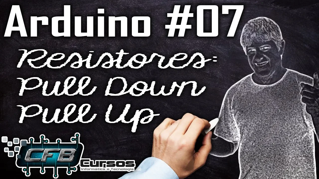 a moçada beleza professor 1 voltando com o nosso curso de arduino a hora de hoje aula sete nós vamos falar sobre os resistores de pool down e pô na aula passada nós entendemos como trabalhar com botões nós implementamos um botão a inoã due na montagem do im e fizemos esse botão funcionar ascendendo é de que todo mundo reparou ou não que tinha um resistor ligado a esse botão ea forma com que nós vamos ligar esse resistor conectar o positivo eo negativo no botão que vai dizer se ele é bom dar o popular mas vamos começar