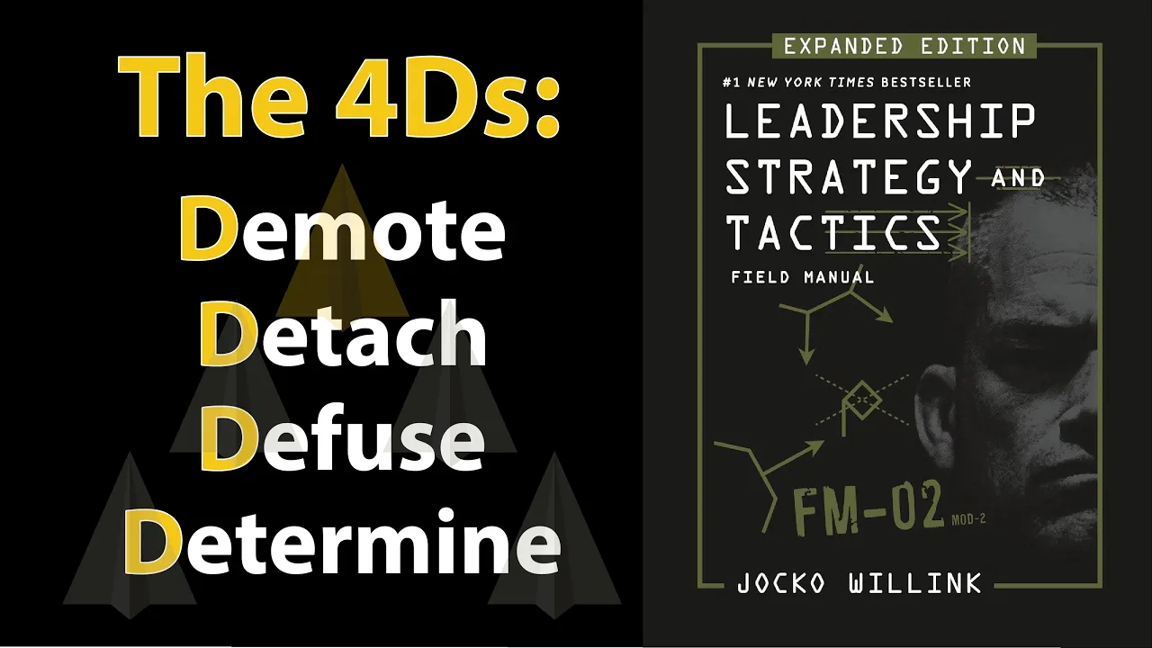 I recently read leadership strategy and tactics by Joo willink Joo willink a retired Navy SEAL Commander uses the leadership strategies and tactics he learned in the military to help Business Leaders and run his own businesses after learning more about these strategies and tactics I'm confident that you and I can use them to be more effective leaders at home at the office and in any team environment I've distilled what I believe to be 's most impactful lessons into what I call joo's 4D Leadership Model demote detach defuse and determine first demote your ego when jao willink