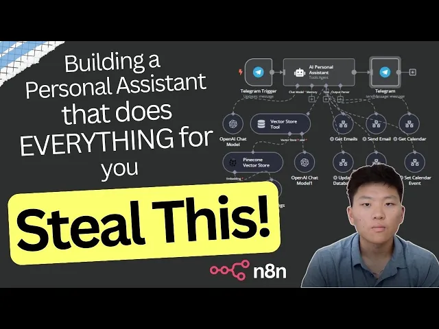 I'm super excited to share this AI agent build with you guys today I definitely think that it's going to change the way that I do my business especially anything personal Administration related and that's because I'm going to consider this a human personal assistant except for unlike a human this thing is going to be available to me 24/7 it's going to respond to me immediately and truly it costs a fraction of what it would be to hire an actual human personal assistant so this is the build right here as you can tell the way that we're interacting with our agent is through telegram so I can pull that up on my phone or on my desktop and all I have to do is ask it to do something for me it's going to run through through this logic and then it's going to Output either a result to me or it's going to tell me that hey I went in the back end and I did that for you you know updated the database or set a calendar event whatever it may be so I'm going to walk through exactly what's going on in each step and we'll jump into each of these sub tools and all of these are sub tools that I built also with an nadn but before we get into you know the details let's just do a quick demo of what this thing looks like in action let's say you're running late to a meeting and you don't feel super prepared so you want to get caught up on emails real quick let's just go into our telegram app on the phone and type in can you summarize my emails from today then we'll see we got two emails that we want to read real quick here's a summary of your emails from today first one's from Amanda she provided an update on a redesigned project completed homepage layout updated branding mobile optimization blah blah blah the project is on task to complete by the 20th and she requests approval of the blog page mockup and details by the 14th she also invites any questions second one is from Mike Mike informed you about a billing discrepancy on the recent invoice from the 5th we were buil 550 but the correct amount should have been 475 so we have to settle within 7 days to avoid penalties and it gives us an emotes reach out to there so these two popped up in here because they were marked as unread so that's the ones that are coming through as and getting summarized for us and all the ones that are red as you can see that we wouldn't have got back even like this one um was from today but we're not getting it because it was already red all right that was a quick demo of what it looks like how it works how it interacts with us now let's look at what's actually taking place within this agent workflow so the first thing we'll look at is the open AI chat model obviously we're using um GPT 40 right here and this is just sort of the brain that we're giving to the actual agent entity itself so this is the brain right here then we've got the vector store tool this is just you know we're connecting it to Pine Cone and pine cone is the vector store database that we've been using this is just where in this use case we have contact information so you can say can you email Mike can you email Jenny and it will know how to go find Jenny and find her email address and actually send an email and then we've got um obviously you need to connect different embeddings to these tools but that's pretty much it for those and then all the other tools that we'll be using today were tools that I built within nadn so as you can tell by this little logo that just means that you're connecting a tool that you built in this software as well but we have get emails send email get calendar set calendar update database and summarized database so we'll be going through each of these tools I'll show you guys the logic behind each of these and um we'll get we'll do a demo for each one as well and since the demo we just did was forget emails we might as well hop into this one first what I think makes the most sense when I'm showing you guys each of these little workflows is actually seeing live data move through so I'm looking at an execution we're looking at the one when I just asked it through telegram to summarize emails from today and that way real data will be moving through each node and you'll be able to see it and I can explain it better and it will make more sense hopefully for everybody so all that's happening right here is this workflow is being executed by the AI agent the AI agent is call calling this tool in order to get the job done so as you can see this is the workflow trigger and all that's coming in through here is what I said in the telegram sort of a summary of what I said but summarize emails from today that's what is feeding into this whole process so this first node is an open AI node and as you can see the first thing that we wanted to do was give it a prompt so I said your job is to identify what date the user is asking for based on the Json query and what the current date is so I gave it the current date of now this is a JavaScript script code it just says you know dollar sign now and that Returns the date time of what is right now current so that's all that's happening right there and then I gave it two examples the first one is if the query asks for today you would return today's date and if the query asks for yesterday you would return the day before yesterday and sometimes you just have to outline that um it might seem self-explanatory but open AI doesn't always know that you know yesterday was the day before or two days ago was going to be today's date minus two so giving it examples in ensures that it's as consistent as possible and then down here we just have to drag in the actual information for it to use so we're dragged in the Json query which was right here that says summarize emails from today and this is what gave us as the output we got um October 11th which is in fact today so it did its job right so from there we're going to move into a Gmail node in this one we're just grabbing all the emails from the date so we can see we have ge