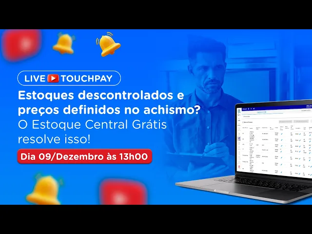 Então você aí que tá vendo essa live, que usa que eu toay, você já tem essa todas as funcionalidades do estoque central que eu vou mostrar, tá? Stock central, ele já está liberado para Todos os nossos clientes, porque a gente entendeu, né, a importância dele realmente na operação. Não faz sentido você ter aí o o Toachpay, tá usando o Tachpay, ter suas lojas, mas não ter um estoque central, porque onde você vai guardar essas mercadorias, né? Não são todas as mercadorias que você compra que vai estar num ponto de venda. Você compra o carregamento do