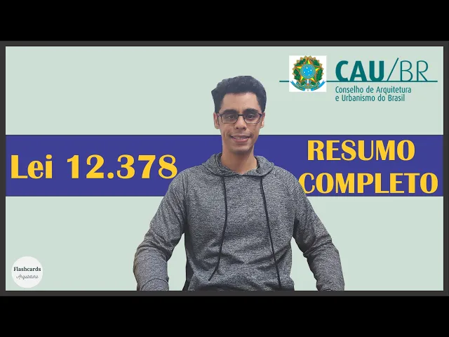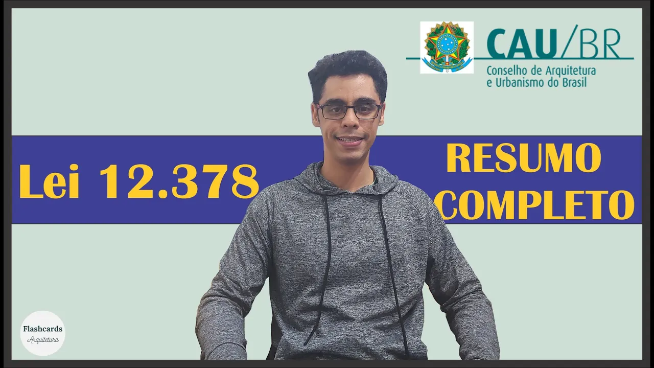 E hoje nós vamos falar sobre a lei 12. 378 de 2010 que regulamenta o exercício da profissão de arquiteto e urbanista no Brasil essa é uma lei extremamente importante para você que vai prestar concursos na área de arquitetura e Justamente por isso nós vamos fazer um resumo dos principais pontos sobre ela para sua prova o Olá seja bem-vindo meu nome é Felipe eu sou arquiteto e concurseiro e você está no flashcards arquitetura e no vídeo de hoje nós vamos falar sobre a Lei 12. 378 eu já fiz um vídeo aqui no canal sobre ela falando das 10 questões mais cobradas em concursos E hoje nós vamos fazer um resumo para você grifar o seu material para não deixar passar batido nenhum dos pontos mais importantes para sua prova vamos começar a primeira coisa que eu preciso chamar a sua atenção é para o artigo 2º da lei que trata das atribuições do arquiteto e urbanista são várias atribuições eu não vou pedir para você decorar todas elas acho muito importante você fazer várias e várias leituras sobre esse artigo segundo porque ele despenca em prova e naturalmente conteúdo vai fixar na sua cabeça e para ajudar a fixar esse outros conteúdos eu tenho uma novidade para vocês A partir dessa semana e os dois vídeos no canal o vídeo de quarta-feira que nós já temos normalmente e o vídeo de sexta-feira e o vídeo de sexta vai ser especial porque nós vamos resolver questões de concurso toda sexta-feira nós teremos resoluções tanto de questões ou de alguma prova de concurso que vocês queiram muito análise de edital mas a prioridade vai ser resolução de questões e para começar nessa sexta-feira nós vamos resolver questões da Lei 12.