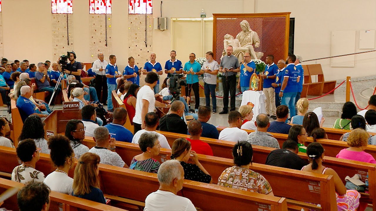 e do mundo inteiro Deus santo Deus forte Deus Imortal tende piedade de nós e do mundo inteiro eu vou pedir para o padre abençoar a gente ele que é de Lorena ele que está na missão ele que ajuda tanta a comunidade de canção nova padre Dirlei dai-nos a sua bênção também Padre nós pedimos que o senhor abençoes objetos de devoção a água muitas pessoas hoje apresentam os remédios estão apresentando terços lenços produtos de evangelização para levar a palavra de Deus então nós pedimos que o Senhor nos dê a benção Amém o Senhor esteja convosco ele