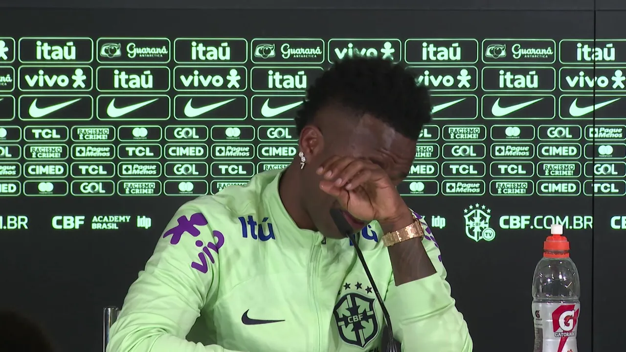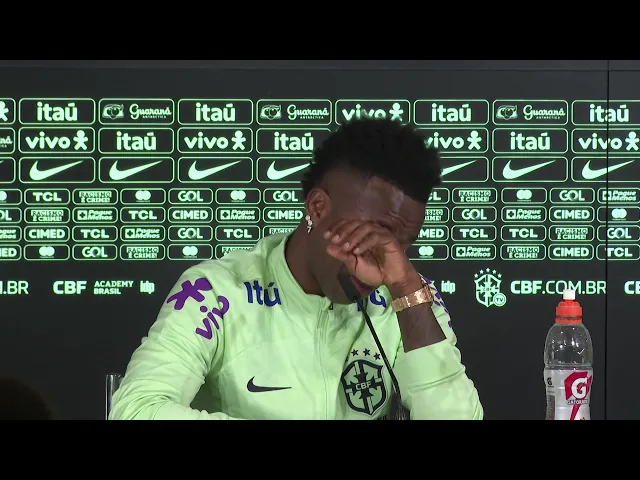 a dor de uma luta diária Desculpa é que eu só queria jogar futebol só quero jogar só quero fazer de tudo pelo meu clube e pela pela minha família o atacante da seleção brasileira Vinícius Júnior concedeu entrevista coletiva nesta segunda-feira e se emocionou ao falar sobre os diversos insultos racistas que precisou enfrentar ainda na curta carreira a entrevista ocorreu na véspera do amistoso contra a Espanha marcado pelas duas federações contra o racismo Vini chegou a dizer que tem perdido a vontade de jogar futebol as lágrimas foram substituídas pelo habitual sorriso quando ele começou a falar