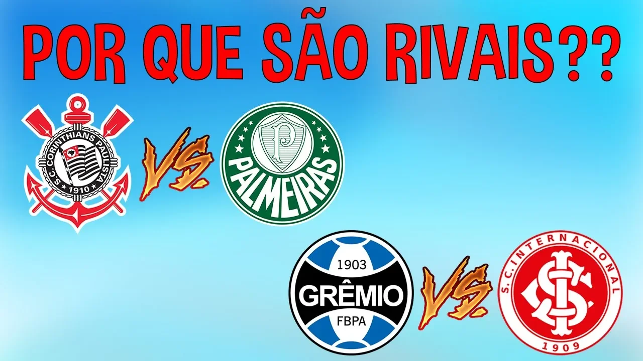 e tem validade do futebol que são muito grandes aí você já parou para pensar o porquê que seu time é tão ivaldo outro tipo qual o motivo tá ligado é o que eu vou mostrar nesse vídeo nenhum deu tudo certo meu nome é jonatas nesse vídeo eu vou explicar para vocês as maiores rivalidades do brasil a gente esse palmeiras flamengo contra fluminense lavar então agora começando com o maior clássico do sul grêmio e internacional o gre-nal ano esses dois times são os maiores clubes do rio grande do sul pode-se dizer que da região sul inteira