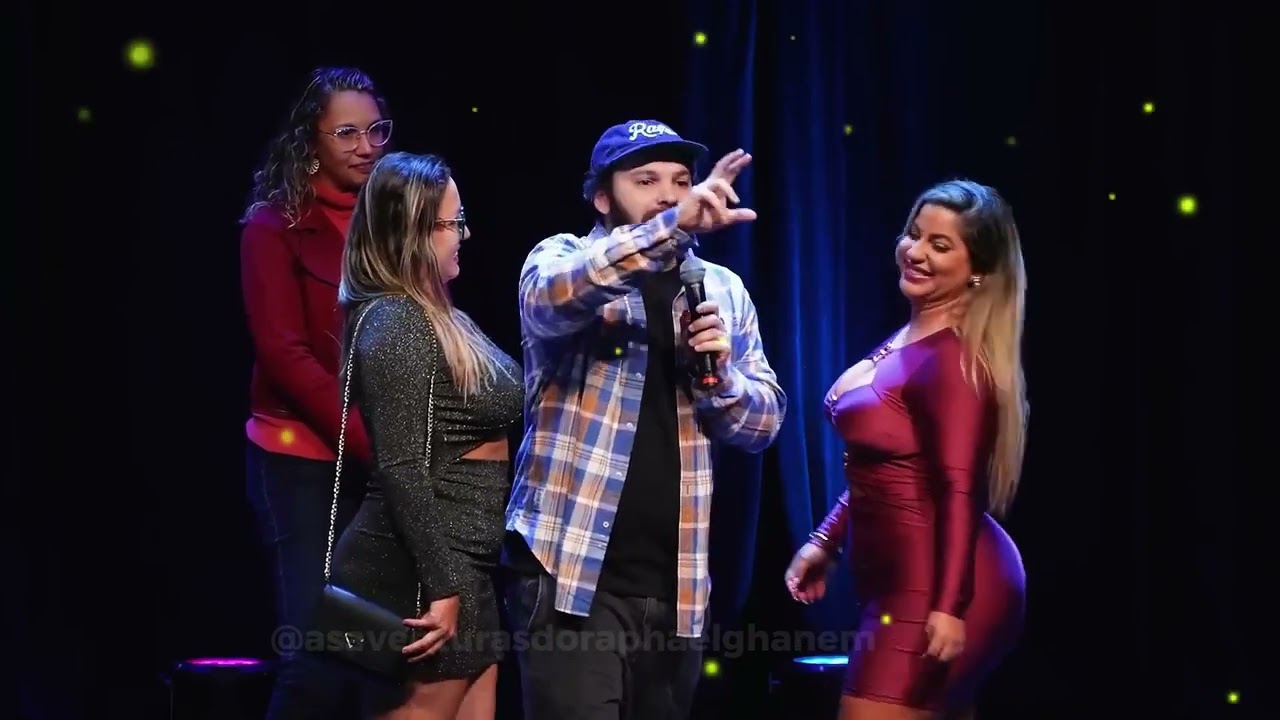 tem um casal ali, né? Tá. Vocês Vamos encerrar com vocês quatro dando um beijão. Vem cá. E o cara peidou. Não vem, vem, pô. Ih, ela topa. Não topa. Então vem só ela, cara. Ela tá tipo vindo. Ele que peidou. Ó, eles já estiveram no palco ano passado aqui. Eles tiveram, esses dois tiveram no palco ano passado e aí esses aqui Não. Vem vocês dois. Eu não vou. Tá com medo de tu querer comer. Ele também traria uma amiga? Não, ele não merece não. A Lari canta triste. Não vai jogar, vai jogar. Não fala nada.