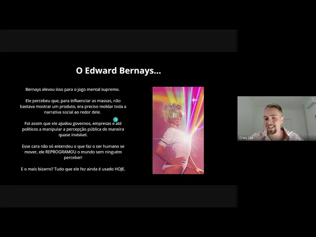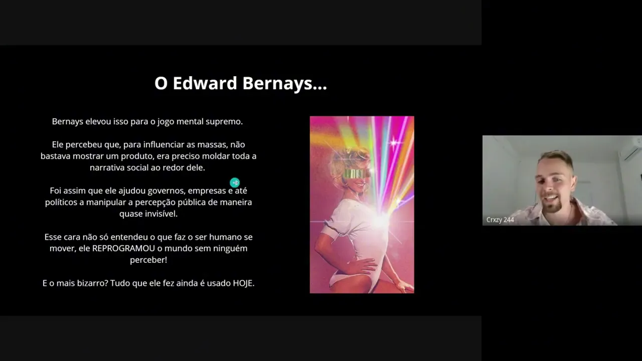 hoje a gente sofre isso aqui cara isso aqui foi 1920 há 100 anos atrás e a gente vive até hoje então esse cara fez a elite acreditar que era possível controlar o mundo sem que ninguém percebesse e esse cara viveu no topo da pirâmide social assim ele fazia ele tinha uma mansão cara ele fazia festa que tinha Presidente na festa CEO astros de Hollywood intelectuais da época grandes filósofos ele era o cara que ensinava os ricos e os poderosos como manipular o povo sem que o povo percebesse que tava Sendo manipulado esse cara bizar sem