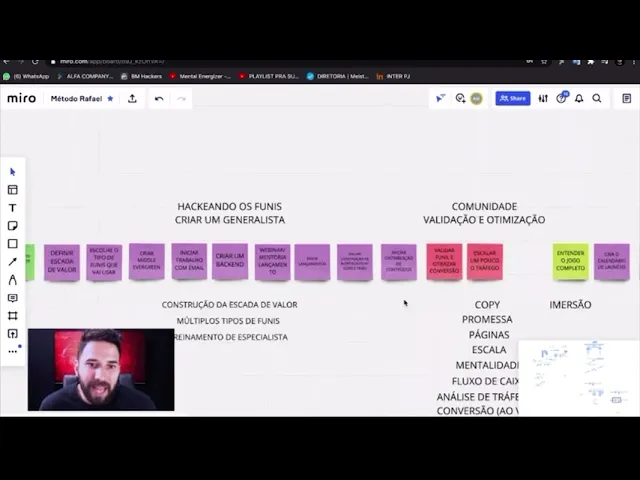 Pronto agora que você já definiu tudo o que a gente precisa a gente vai começar a montar sua escada de valor e essa escada de valor ela é simples e complexa ao mesmo tempo mas é simples tá vamos lá deixa eu te mostrar você vai fazer primeira coisa que eu utilizo bastante para montar é utilizar uma ferramenta chamada Miro tá miro.com você vai acessar essa ferramenta essa ferramenta é ferramenta que eu ui PR construir várias escadas de valor de vários experts desse mercado tá foram desenhadas e planejadas aqui então o que que você vai fazer