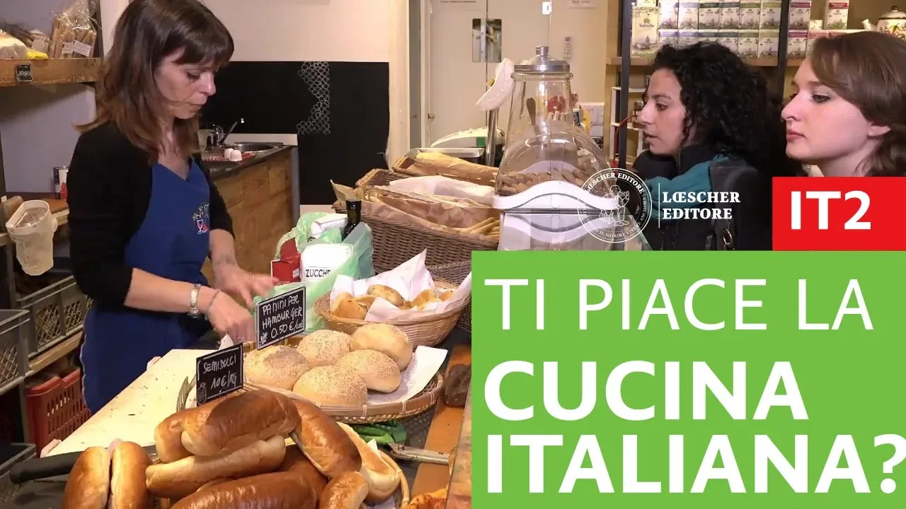 in quanti siamo a cena tu io roberto marta e due amici di roberto siamo in sei cosa facciamo antipasto primo secondo dolce una tipica cena italiana no dai quello che abbiamo deciso ieri un piatto principale un dolce entriamo buongiorno buongiorno cosa desiderate vorremmo un chilo di farina una scatola di pomodori e due mozzarelle anche un po di lievito e una bottiglia da mezzo litro di olio vi occorre altro sì vorrei 6 uova è un chilo di zucchero poi un pacchetto di caffè un po di mascarpone quanto mascarpone volete mezzo chilo per favore nient'altro no grazie