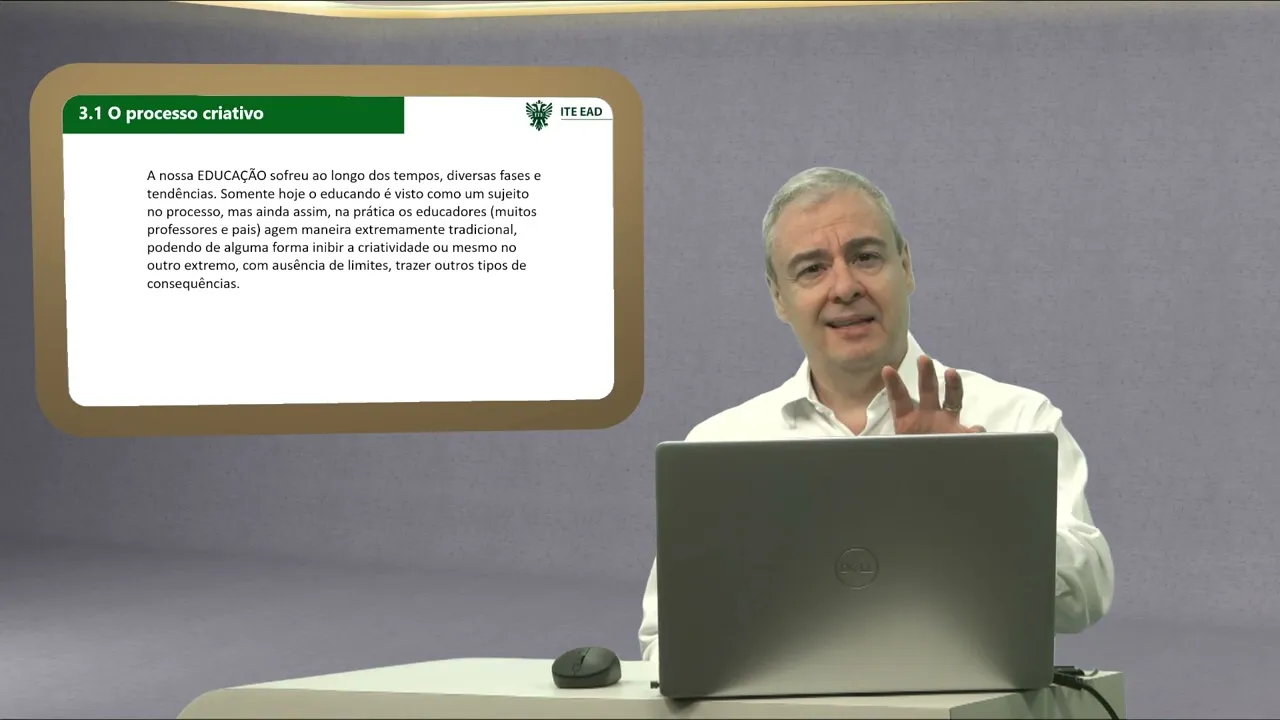 a nossa educação Então ela veio sofrendo né diversas mudanças diversas fases e tendências hoje o educando ele é visto como um sujeito no processo e perceba que eu falo de processo porque se eu quero formar pessoas criativas se eu quero ser criativo eu preciso valorizar o processo e não o resultado já uma primeira dica aí mas ainda assim na prática muitos educadores e e pai agem de maneira extremamente tradicional como eu citei com excessos de nãos com regras de adultos e e isso vai limitando o desenvolvimento da criatividade então ele vai na verdade ele vai