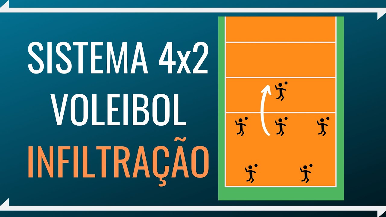 o sistema 42 invertido a diferença básica deles é que no sistema 4 2 simples você vai ter sempre um levantador na rede fazendo um levantamento e dois atacantes na rede no sistema 4 2 invertido com infiltração você vai ter sempre o levantador que está no fundo o filtrando é fazer o levantamento eo levantador que a rede vai ser também um atacante junto com os outros dois atacantes que já estão na rede então no sistema 4 2 invertido com infiltração você vai ter sempre três atacantes na rede contando com o levantador que está na rede o