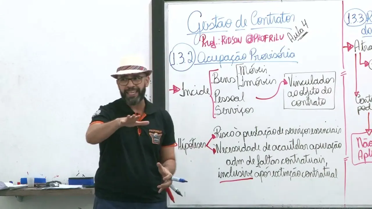 não é admitida pela legislação a ocupação provisória quando o contrato já estiver extinto aí tu pensa se o contrato acabou não tem só que pode sim pode haver ocupação provisória quando o Contrato estiver extinto sim ou não sim em que caso quando houver o quê necessidade de falta contratual fechou beleza matamos esse ponto aqui já foi aqui uma cláusula exorbitante vamos para outra tá lembrando que vocês vão fazer para técnico e vão fazer para analista administrativo também eu dei um primeiro tema muito perigoso eh paraa tua questão discursiva quem vai fazer para analista administrativo que