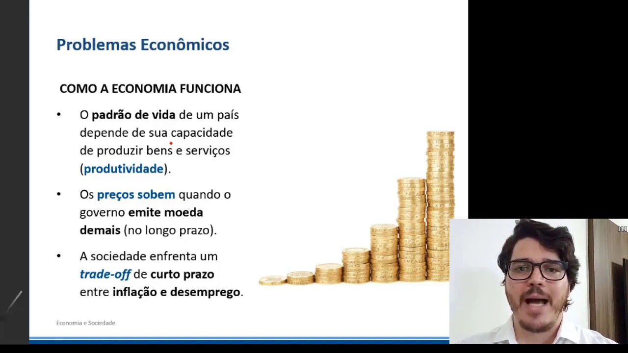 é que os preços sobem quando o governo emite moeda demais então no longo prazo quando o governo decide simplesmente emitir moeda ele só tá causando inflação ele só tá fazendo elevar os preços no curto prazo a gente chama isso de política monetária expansionista que a gente vai ver lá no nosso terceira aula tá então acalmem a gente ainda vai ver sobre esses conselhos mas já já é uma eu gostei da economia não é fundamental que quando o governo ele emite moeda demais ele começa a imprimir moeda né por isso o governo não pode simplesmente imprimir