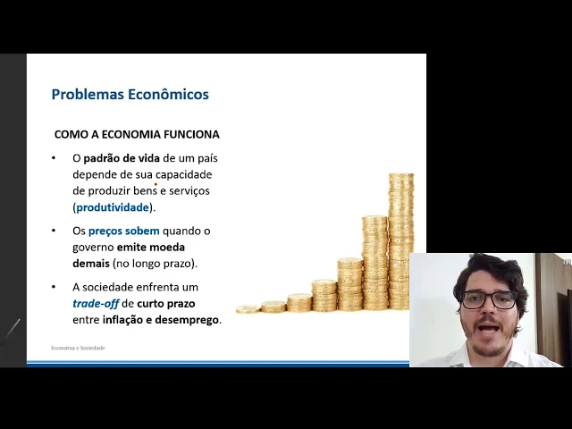 moeda isso tem que estar de acordo com a política monetária se ele simplesmente imprimir moeda no longo prazo e só vai causar inflação que é prejudicial para a população não era uma vez que a inflação faz com que a gente perca poder aquisitivo que a gente acaba perdendo o poder aquisitivo e além disso a economia como um todo ela enfrenta um trade-off gente acabou de falar de três dobras que o trade-off é uma troca e economia como um todo ela enfrenta um trade-off em que sentido um trade-off no curto prazo entre inflação e desemprego o