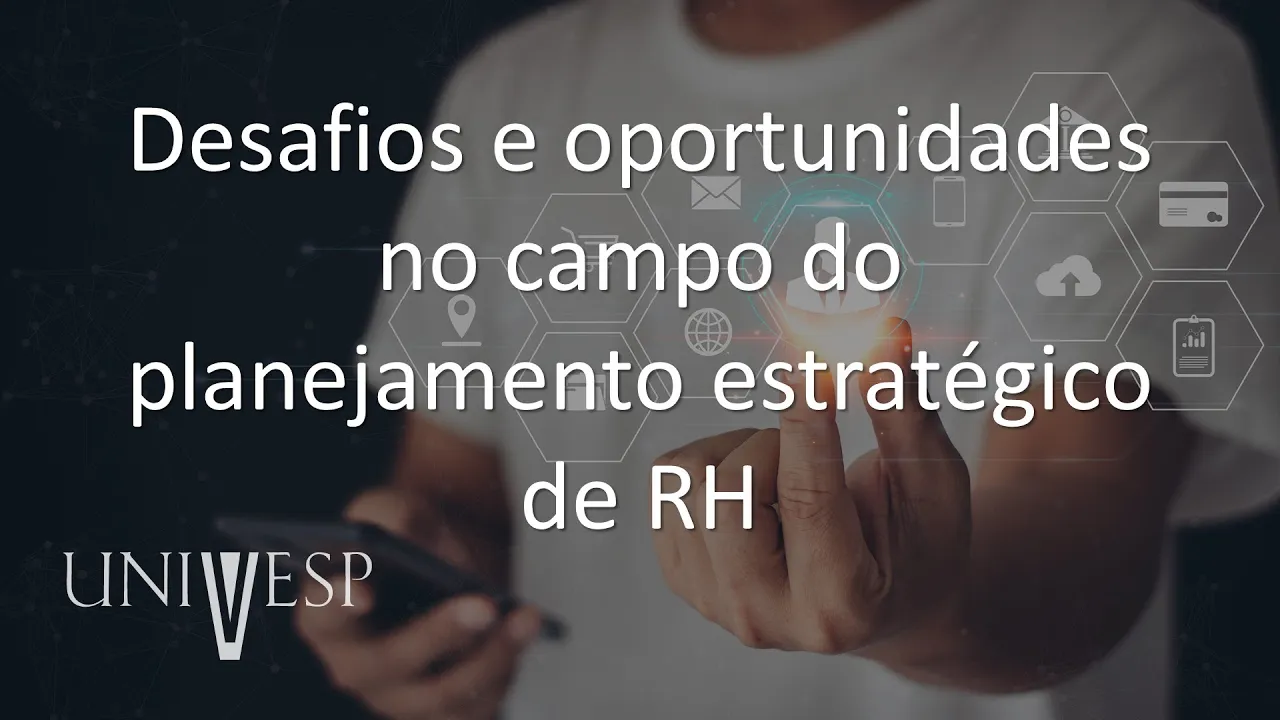 [Música] Olá tudo bem com vocês como é que tem passado hoje nós vamos finalizar mais uma semana da nossa disciplina terminando com o módulo sobre planejamento estratégico Então hoje vamos falar um pouquinho sobre desafios e oportunidades do campo do planejamento estratégico de Recursos Humanos nesse sentido a ideia é analisar e refletir criticamente desafios e oportunidades no campo do planejamento estratégico em Recursos Humanos em gestão de pessoas a minha ideia pessoal é retomar um pouquinho do que já foi dito nas duas vídeo-aulas anteriores sobre planejamento estratégico e discutir aqui com vocês De que forma a nossa