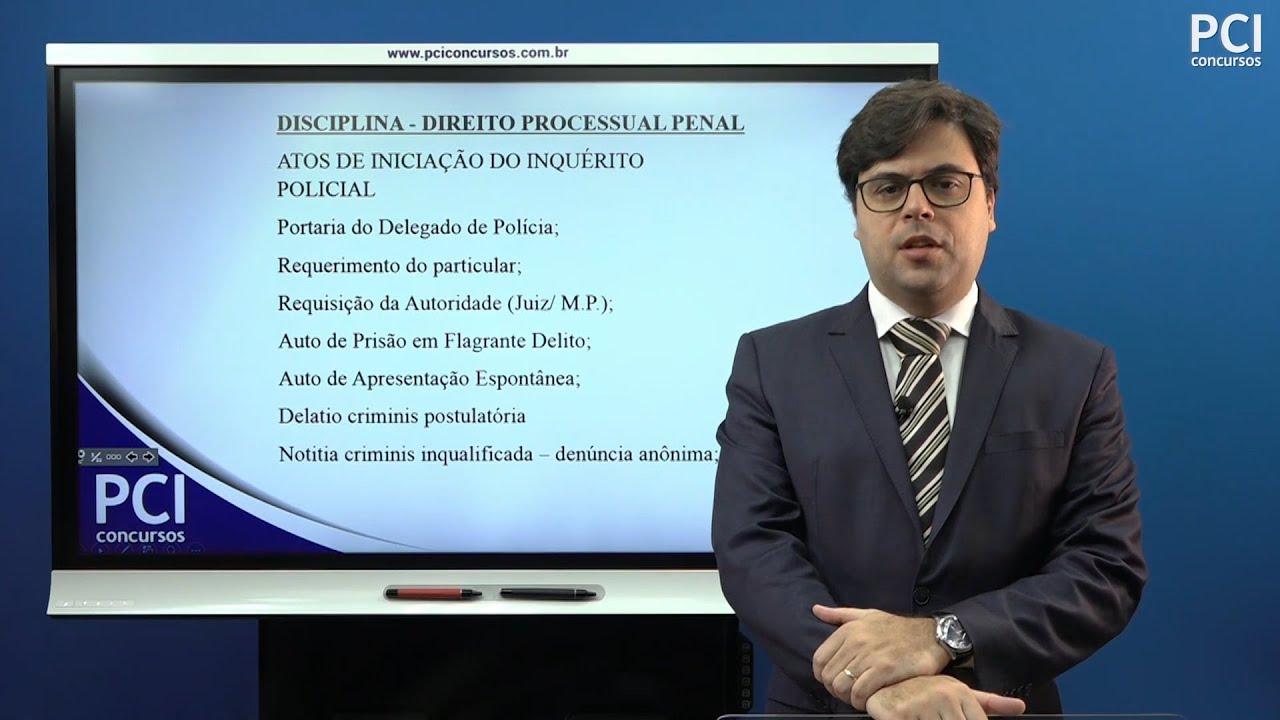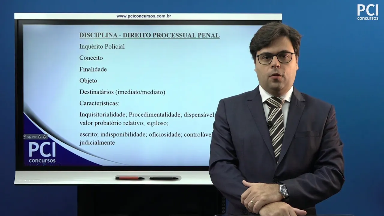 e aí o olá cumprimento a todos mais uma aula de processo penal pela pci concursos e no dia de hoje nós vamos tratar do inquérito policial constatado que era policial como vocês podem acompanhar aqui na lousa vamos falar de todos os itens relacionados ao inquérito policial como instrumento de investigação o inquérito policial primeira informação fundamental que nós temos que trazer é o conceito do inquérito policial inquérito policial é um procedimento é um procedimento administrativo um procedimento administrativo de caráter inquisitorial é presidido pelo delegado de polícia no sentido de se obter elementos de provas para demonstração