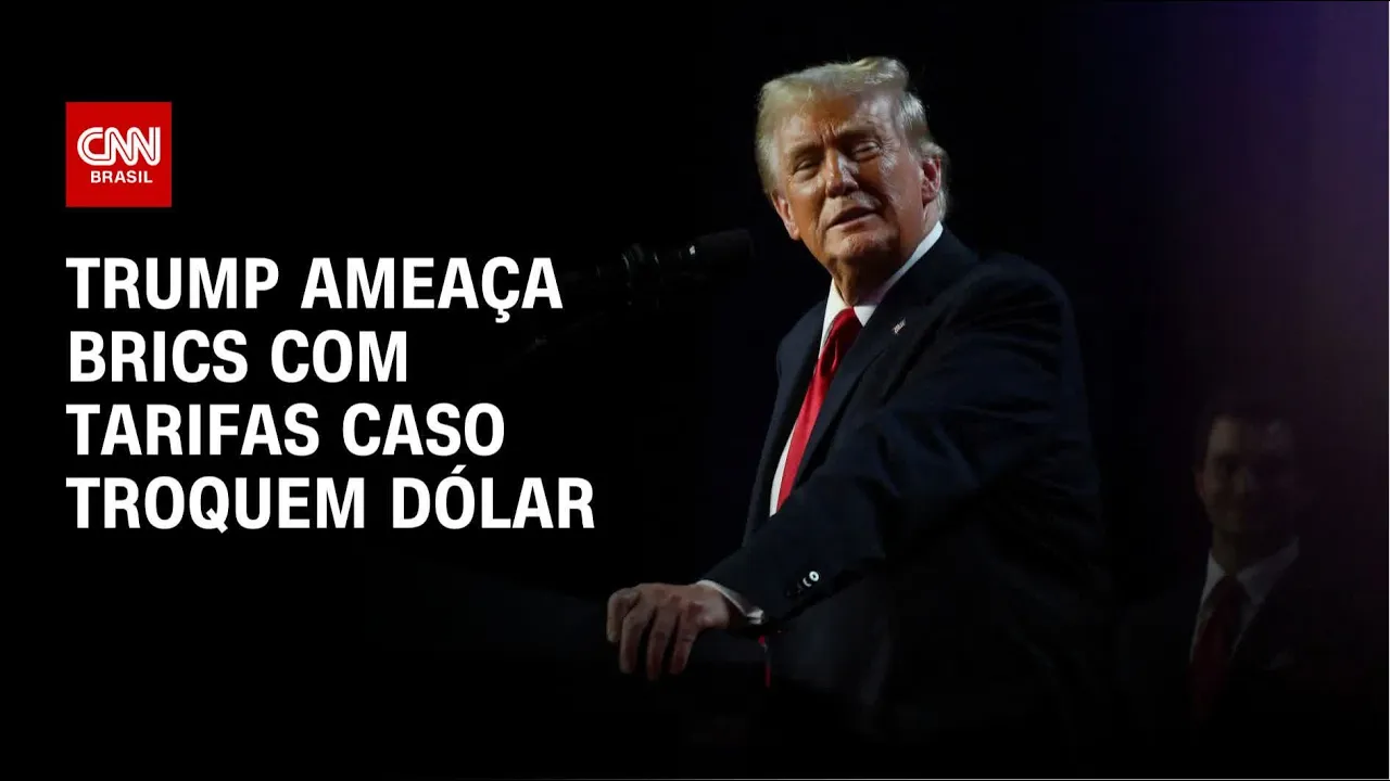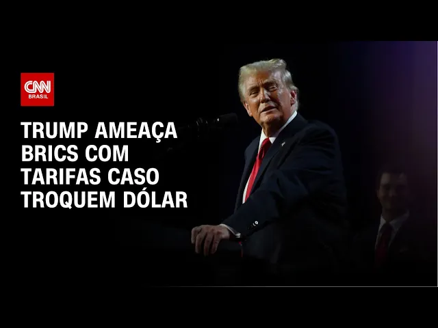 vamos olhar pros Estados Unidos porque o presidente eleito Donald trump ameaçou os países do brix do qual o Brasil faz parte de tarifas de 100% ó o site da CNN informando isso porque o grupo tem defendido uma moeda em comum para substituir o dólar nas transações internas entre os países Bricks Brasil eh China índia África do Sul e também a Rússia trump exigiu que esses países se comprometam a não avançar com essa ideia sob pena de terem produtos taxados em 100% e avisou que qualquer país que tente substituir o dólar no comércio internacional deve dar