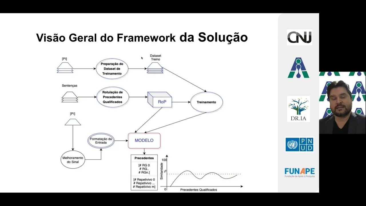 [Música] Olá meu nome é nton Correia da Silva Eu Sou coordenador científico do projeto de precedentes qualificados uma parceria entre o CNJ e a Universidade de Brasília e eu estou aqui para falar um pouco sobre eh a arquitetura da solução que nós desenvolvemos do ponto de vista de Inteligência Artificial né temos aí outros materiais de outros professores apresentando outras outras visões do projeto meu objetivo aqui com vocês é detalhar um aí o Framework da solução que nós entregamos aí pro CNJ do ponto de vista das estruturas de modelos de Inteligência Artificial que estão embutidas embarcadas