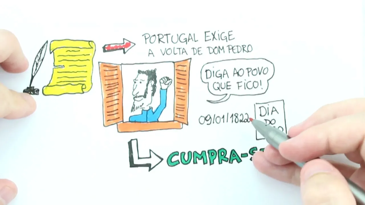 certo Então olha só o povo vai até a frente da casa do Dom Pedro exigindo que o Dom Pedro fique no Brasil e aí o Dom Pedro sai a varanda da sua casa e faz fala aquela famosa a frase se é pelo bem de todos e felicidade geral da Nação diga ao povo que eu fico E aí dia 9 de Janeiro de 1822 fica conhecido como o Dia do Fico que é o dia que o Dom Pedro decide ficar e olha só muita atenção aqui Dom Pedro ficando ele já estabelece o cumpra-se a lei do