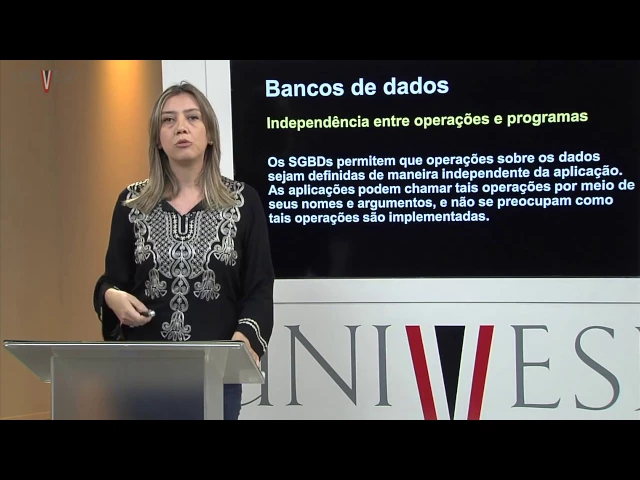Eles não precisarão lidar com o armazenamento em si e com o controle de acesso a esses dados. Dessa forma, nós podemos estar focados nas estruturas lógicas que permitirão o armazenamento mais, ah, digamos assim, o armazenamento mais estruturado e mais seguro. Bom, uma outra vantagem dos SGBDS é que eles permitem que operações sobre os dados sejam definidas de maneira independente da aplicação.