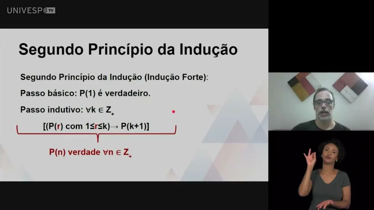 [Música] Olá alunas e alunos do curso de fundamentos matemáticos para computação nesta vídeo aula eu vou estar falando de indução matemática custar apresentando o primeiro princípio da indução e o segundo princípio da indução matemática eu gosto sempre de usar esse exemplo de subir numa escada infinita Suponha que eu tenho que verificar a propriedade de subir um degrau dentro desse domínio aí de escadas infinita então eu verifico maior eu consigo alcançar o primeiro degrau tá legal consigo Então eu posso supor que eu seja capaz de chegar a um degrau a qualquer mas se eu consigo chegar