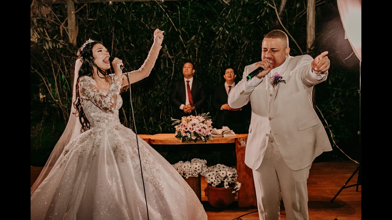 possam retomar a cantar procurando um ao outro o melhor tom eventual um chuva alguma tempestade alguma posso destruir esta casa sobre a rocha é construído se uma telha se rancar que vocês tenham condições de colocar outro no lugar se a pintura comecei a começar a perder o brilho que vocês tenham condições de tocá lá e que o homem algum possa separar desunir estes corações que deus mesmo nesta noite mil do pai do filho do espírito santo uma salva de palmas porque nós temos uma nova família nascida diante do altar do senhor dois corações que se