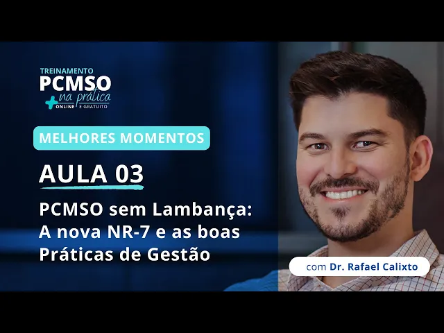 [Música] E aí hoje o assunto é PCMSO sem lambanças a nova nr7 e boas práticas de de gestão como vocês podem perceber eu coloquei o nova entre aspas aqui e aí eu queria pessoal que vocês comentassem por favor no chat antes de eu entrar direto na temática aqui do dia de hoje o que que faz sentido para vocês a nr7 tá fazendo já fez né 2 anos e 3 meses de existência vocês acham que essa Norma com 2 anos e 3 meses de existência é uma Norma nova ou não mas aí vem um item pessoal