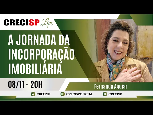 pela FAAP em 1991 e advogada pela FMU em 1993 pós-graduada em Negócios Imobiliários pela FAAP em 2006 com especialização em direito imobiliário pelo secov em 2007 é sócia fundadora do escritório FCB Aguiar advocacia trabalha há 27 anos com direito imobiliário ocupou importantes cargos de liderança em várias corporadora e construtoras de São Paulo e o tema de hoje vai ser a jornada da incorporação imobiliária Fernanda seja bem-vinda boa palestra para você e no final a gente retoma nosso contato muito obrigada obrigada a você olá pessoal eu gostaria primeiramente de agradecer agradecer a todos pela presença gostaria