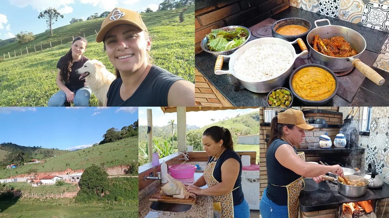 ALMOÇO CAIPIRA/GALINHA com QUIABO e VIRADO+AVENTURAS da CAÇA aos OVOS de ANGOLA😅😂