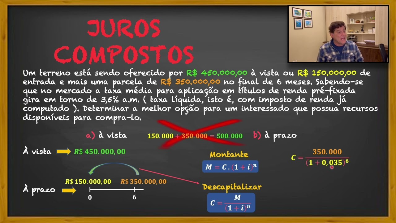 de 7,52 então ia ficar uma equação né onde você isolaria o i para descobrir o valor que é o que o problema tá pedindo né ó qual a taxa de juros é o i só que pessoal vamos pensar um pouquinho se você for resolver essa equação elevada a 8 e elevada a 10ma potência velio você não tem noção você vai cair numa equação aqui sei lá de que grau você não tô desmerecendo você hein mas a gente mal porcamente sabe resolver uma equação do segundo grau vai resolver uma equação com grau maior ai bara usa