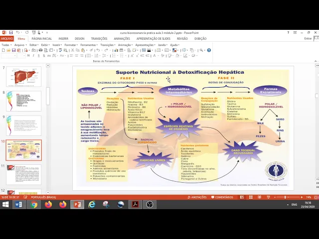 relatar para vocês aqui nessa vídeo aula nosso estudo de caso para vocês poderia interagir no dia a dia do consultório só vou parar um pouquinho aqui na parte você pode nutricional a detoxificação do fígado porque é muito importante para vocês avaliarem né se o cliente o paciente de vocês tem uma nutrição adequada ou na fase um né que envolvem enzimas do citocromo p450 entre outras enzimas então a gente pode notar que esses nutrientes são usados né é para metabolização é e depois nós vamos ter aqui os metabólitos que são criados depois da fase um então