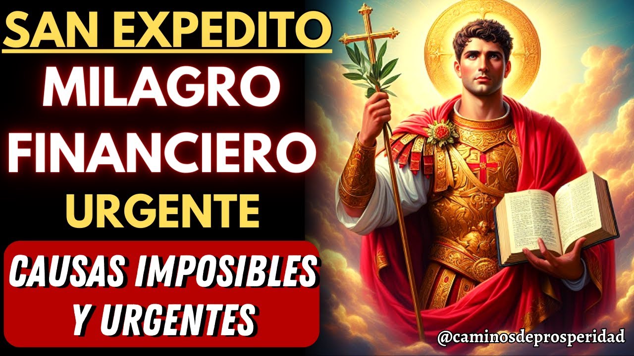 [Música] bienvenidos al Canal oraciones para Milagros urgentes hoy vamos a rezar una poderosa oración a San Expedito Y créeme tu petición será atendida inmediatamente Te invito a escuchar esta oración con fe a abrir tu corazón porque se han Expedito el glorioso soldado de cristo está dispuesto a escucharte él es tu ayudante en tiempos difíciles y tu defensor inmediato en situaciones urgentes no hay petición tan grande que él no pueda satisfacer ni problema tan complejo Que él no pueda resolver Así que te pido que dejes lo que estás haciendo ahora y no abandones Este vídeo bajo