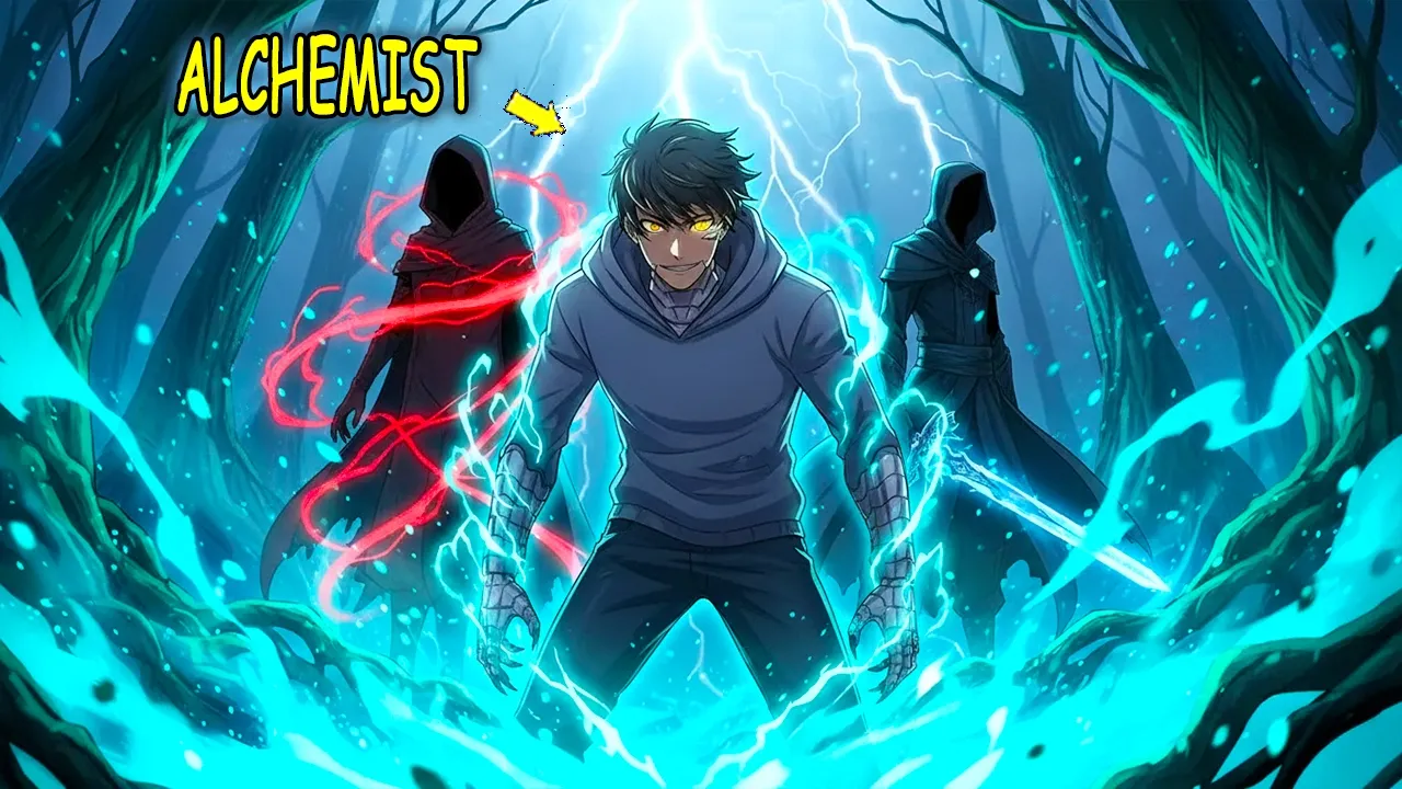 it was his burning resentment that kept his spirit from Shattering, allowing him to create the ultimate alchemic elixir. He couldn't believe he had actually done it. Finally, Simon poured the vial into the magic circle he had drawn. Maxis Suke, because of you two, I've achieved my life's greatest goals before my end. I don't know if this will work in this environment, but the foundation of alchemy is always equivalent exchange. Bolts of lightning rain down on the circle as Simon screamed in shock. The Entire house lit up in the vast darkness. And then a blue stone