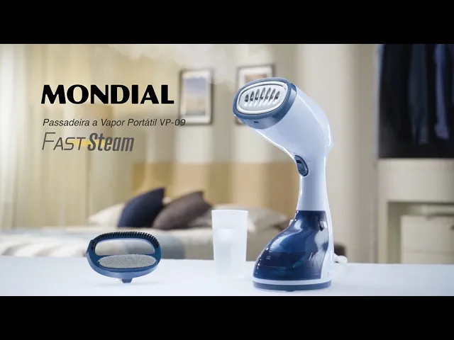 você precisa da passadeira a vapor portátil Fast Steam da Mondial o jeito mais rápido e compacto para desamassar e higienizar suas roupas por completo com a potência ideal ele combina o poder do vapor contínuo com o bocal de ainox para remover vincos desamassar e higienizar suas roupas direto no cabide o fast Sting da Mondial tem aquecimento ultra rápido e pode ser usado em todos os tipos de tecido tem reservatório de água transparente removível e sua capacidade de 260 ml garante mais tempo de uso o cabo giratório de 1,9 m traz mais praticidade Enquanto sua escova