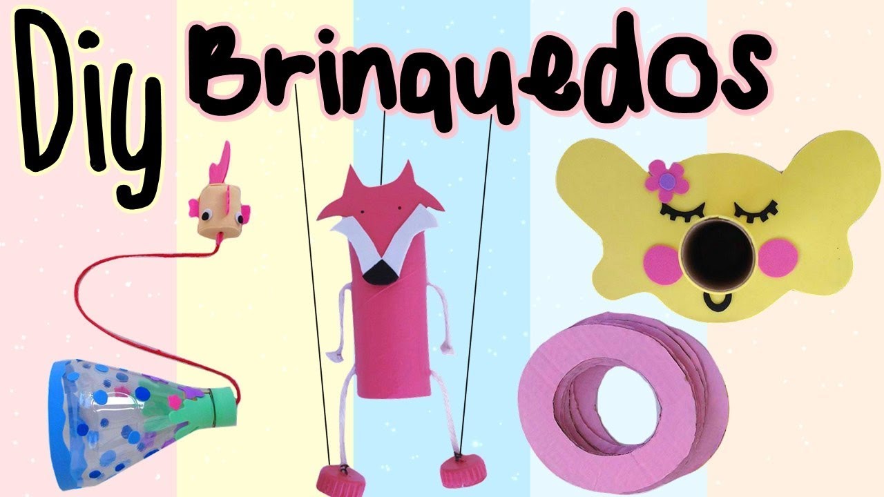 o Olá pessoal tudo bem com vocês no vídeo de hoje nós vamos aprender a fazer esses três brinquedos incríveis eles estimulam a imaginação a criatividade o raciocínio lógico EA coordenação motora e o melhor de tudo é que eles são produzidos com materiais recicláveis e é o primeiro brinquedo é o bilboquê para fazer esse brinquedo Você vai precisar da parte de cima de uma garrafa PET um pedaço de barbante ou Lan a tampinha de garrafa papéis coloridos uma tesoura sem ponta o e cola branca o primeiro peça a um adulto para fazer um furo na tampa
