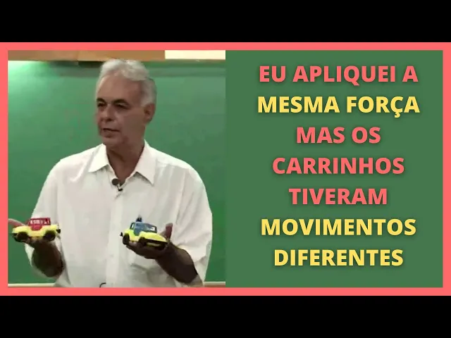 ambos Tá certo no entanto da Núbia sabe que existe uma diferença física não só cromática entre os dois tá E por causa dessa diferença que você vai ver uma diferença no movimento que eles vão que eles vão ter aqui um dois três um dois três a situação se repete né que que vocês estão vendo aí qual é o carro que anda mais o azul anda mais no entanto ele sofreu uma força igual ao Vermelho Por que que o azul andou mais do que o vermelho Mas vamos lá se descobriu qual é a diferença entre os