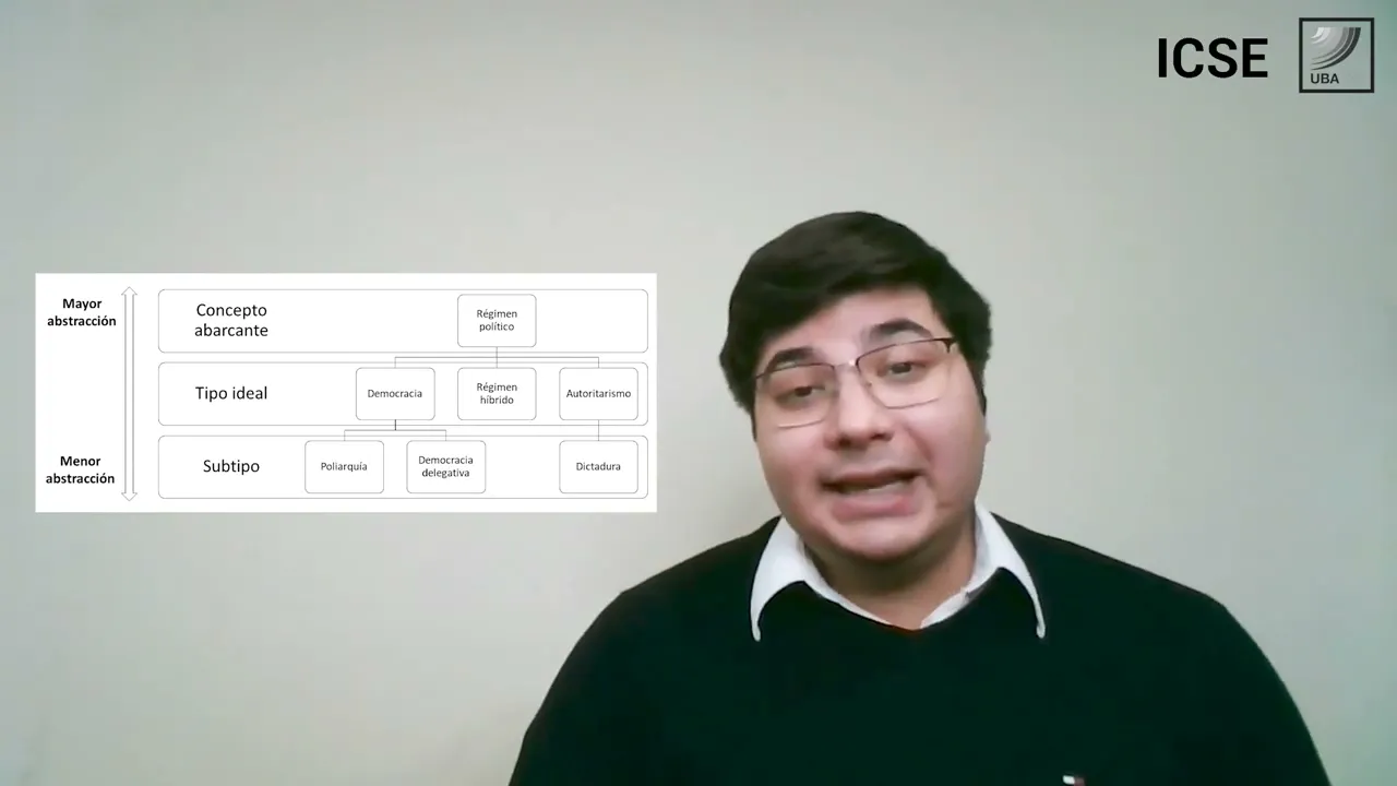 descarga básicamente está compuesta por un extremo en el cual la abstracción es total es decir por ejemplo cuando uno piensa en conceptos como régimen político que sería un concepto abarcante es decir es un concepto que no tiene un referente empírico no tiene un referente en la realidad a partir de ese concepto abarcante uno puede pensar en los tipos ideales que son conceptos que fueron creados a partir de lo que nosotros notamos en la realidad pero que tienen una definición que es muy difícil poder cumplir en la realidad y son casi nunca son encontrados por eso