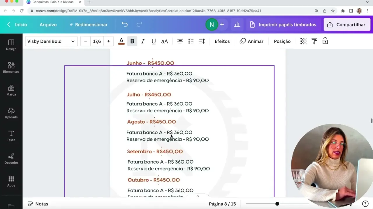 [Música] aqui está o nosso plano de dívidas e eu vou te ensinar como colocar isso na prática vamos lá lembra que eu disse para você que você vai ter que pagar a sua dívidas da menor para maior e que você vai pagar uma de cada vez e vai guardar um valor mensal para ir quitando uma uma Esse é o processo Então feito o seu orçamento mensal Você sabe qual é o seu potencial de sobra Qual é aquele valor que você vai conseguir todos os meses fazer sobrar no seu orçamento que gira em torno de 20% da sua receita do seu salário da sua renda Nesse caso a gente pegou aqui o caso de Mariquinha e no caso dela sobra né r$ 800 por mês que que a gente vai fazer com isso então primeiro eu testei as dívidas novamente simplesmente copiei e colei as dívidas que nós colocamos na planilha no mapa da prosperidade um total de 30. 550 nesse caso eu coloquei o pai em primeiro lugar a fatura do Banco a é o que eu coloquei dois e meio que foi o valor inicial atualmente considerando juros tá 3. 200 porém eu considerei dois e meio porque nós vamos tentar pagar apenas esse valor e o empréstimo está 11.
