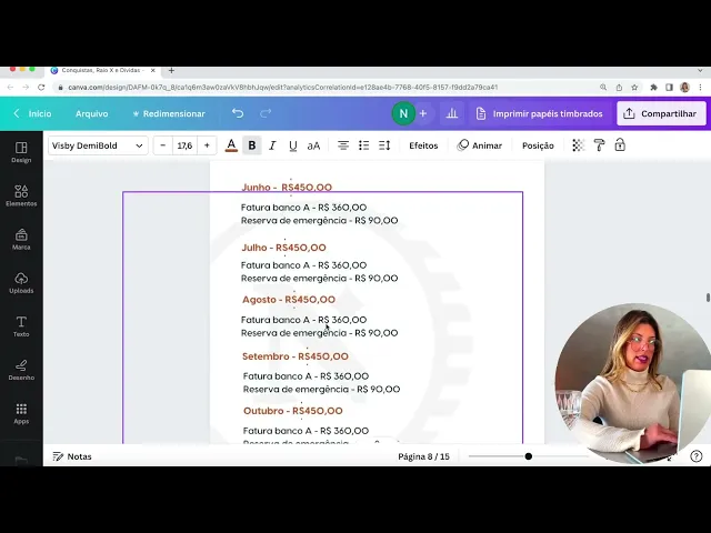 550 o que ainda falta ser pago Qual é a estratégia de pagamento de dívidas desse valor que sobra mensalmente você vai pegar 80% disso para enviar para suas dívidas e vinte por cento para sua reserva de emergência Como assim então dos r$ 800 que nós temos de sobra mensal nós vamos pegar aqui 800 vezes 80% igual 640 aqui no cantinho e a reserva 20%, então 1800 vezes 20% igual 160 tá que que isso quer dizer isso quer dizer que mensalmente da sobra mensal do orçamento de r$ 800 640 vai ser destinado para as dívidas e 160 para reserva Nati porque reserva se eu estou endividado porque a reserva ela é uma garantia de segurança não adianta nada você se empenhar para sair das dívidas E aí Deus me livre no meio do caminho acontece alguma coisa e você tem que entrar em mais dívidas acontece um imprevisto você tem que pegar dinheiro emprestado e você não vai ter ali naquele momento né que você tá focando nas dívidas por esse motivo nós Montamos uma reserva de emergência em conjunto para que você possa de fato respirar e para que você possa de fato ter um valor ali como Segurança ao longo desse processo então focando agora na parte do empréstimo em primeiro lugar Mariquinha paga 350 por mês no empréstimo dela ela deve continuar pagando essa parcela de 350 ou ela para de pagar e depois ela quita isso vai depender atualmente sobra r$ 800 do orçamento dela então qual a opção ela pode muito bem pegar desses 800 350 ela continua pagando aquele empréstimo O que sobrar desses 800 no caso 450 ela pega e cria essa estratégia de dívidas aqui então ao invés de considerar r$ 800 de sobra de orçamento ela consideraria 450 dos 800 350 ela vai pagar o empréstimo tá isso considerando que dentro do orçamento mensal dela esses 800 que sobra não está Considerando o empréstimo para quem não colocou os 350 da parcela do empréstimo no seu orçamento ela não colocou E aí sobra 800 Então ela teria que se ela colocasse o valor de empréstimo ali de 350 por mês esses 800 não seriam mais 800 para sobrar seria r$ 450 certo porque 350 estaria indo para esse empréstimo Então nesse caso Mariquinha poderia continuar pagando esse empréstimo se empenhar para ectando as outras dívidas e depois que ela quitasse as outras dívidas Então vamos por aqui depois que ela quitasse a fatura do Banco a e que tá com o seu pai também ela podia amortizar esse empréstimo para acabar mais rápido então ela poderia pagar parcela do mês 350 E aí mensalmente ela vai pagar a primeira parcela e a última por exemplo aí ela vai amortizando o empréstimo para acabar mais rápido e para pagar menos juros nesse empréstimo É uma opção quando eu sei que eu devo parar de pagar o empréstimo quando você não está conseguindo pagar ele no seu mês quando a parcela dele vamos supor que a parcial do empréstimo da Mariquinha fosse r$ 800 ela teria que pagar dos r$ 800 que sobraria iria tudo para o empréstimo Aí não vale a pena aí vale a pena parar de pagar começar a organizar as outras dívidas montar reserva e depois Guardar o valor para quitar esse empréstimo tá isso eu quero que você tenha em mente a gente precisa fazer sobrar dinheiro no final do mês o seu orçamento tem que sobrar dinheiro se pagar um empréstimo se pagar a uma parcela de fatura enfim foram comprometer a sobra mensal não vai sobrar nada no mês porque eu tô pagando tal empréstimo então não vale a pena a gente precisa fazer sobrar dinheiro no final do mesmo seu orçamento tem que sobrar dinheiro lembrando sempre daquilo que eu falei antes se no seu empréstimo você tiver colocado um bem um carro uma casa como garantia aí você não pode parar de pagar porque tem risco de você perder esse bem tá lembrando que financiamento também tem risco de você perder esse bem condomínio e também IPTU ser fiador de alguma casa contém riscos tanto tomar cuidado com isso em relação a outras dívidas vamos supor assim que você tenha uma dívida de energia então tô com a energia atrasada aqui em casa tô com a internet atrasada aqui em casa Qual dívida eu pago primeiro nesse caso você pode priorizar a dívida de maior risco então se você tem o maior risco você não pagar as contas de energia você vai ficar energia na sua casa então essa essa dívida ela tem um risco maior por trás então você pode priorizar ela você pode priorizar essa dívida de maior risco Caso não você vai dar menor para maior nesse momento então aqui nós vamos fazer o que nós vamos tirar o empréstimo daqui porque Mariquinha vai continuar pagando mensalmente tá esse empréstimo o valor de 350 aqui nós vamos ter 4000 total de dívidas Então por enquanto e a sobra do orçamento passou a ser 450 porque dos 800 Que nós tínhamos 350 vai mensalmente para parcela do empréstimo ela vai continuar pagando então se nós viemos aqui na calculadora eu tenho que 450 que é sobra mensal vezes 20% da reserva vai dar 90 vezes 80% vai ser 360 então nós temos esses valores para trabalhar por mês então descendo aqui já estruturei mas eu quero que você faça isso para você entender como que você vai organizar suas dívidas Então você vai pegar aqui mês a mês tá mês a mês você vai listar todos os meses se demorar cinco meses para você sair da dívidas Você vai precisar Listar cinco meses se demorar dois anos eu quero que você Liste os dois anos para você ter esse controle Então vamos pegar aqui em junho vamos supor que o nosso primeiro mês a gente vai começar a fazer isso vai ser Junho então Mariquinha vai conseguir pegar 450 no mês de junho e ela vai fazer o quê Ela vai pegar aqui ó 360 disso para fatura do Banco a e 90 para reserva que que ela vai fazer com o dinheiro esses 350 que ela vai destinar para dívida ela não vai pagar o banco lembra disso nesse primeiro momento ela vai guardar esse dinheiro com ela para quando ela tiver o montante Total ela vai lá kit de uma vez ela não vai ficar pagando 360 por 