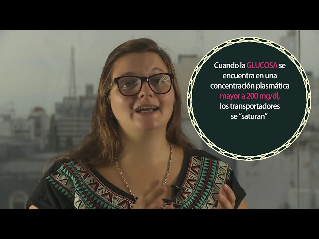 Lo que pasa ahí es que la glucosa aumenta en grandes proporciones en el plasma y esos transportadores que existe en el Túbulo Contorneado Proximal no alcanzan para transportar toda esa glucosa, es como si fuesen muchos vagones de un tren y de pronto se completa la capacidad que tiene esos vagones del tren y no entra más nadie . . .