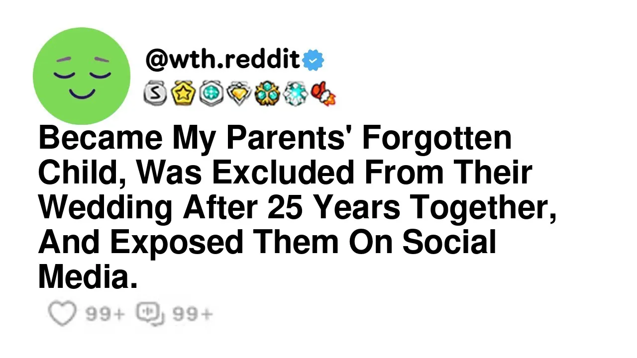became my parents forgotten child was excluded from their wedding after 25 years together and exposed them on social media I 17f was recently forgotten about on the day of my parents wedding my parents have been together for about 25 years but they never actually got married that's why when my dad 50 male proposed to my mother 49f on their anniversary which they have always celebrated on the date my mother found out she was pregnant with my eldest sister even tough they were already together before everyone including me was elated and celebrated the occasion with great