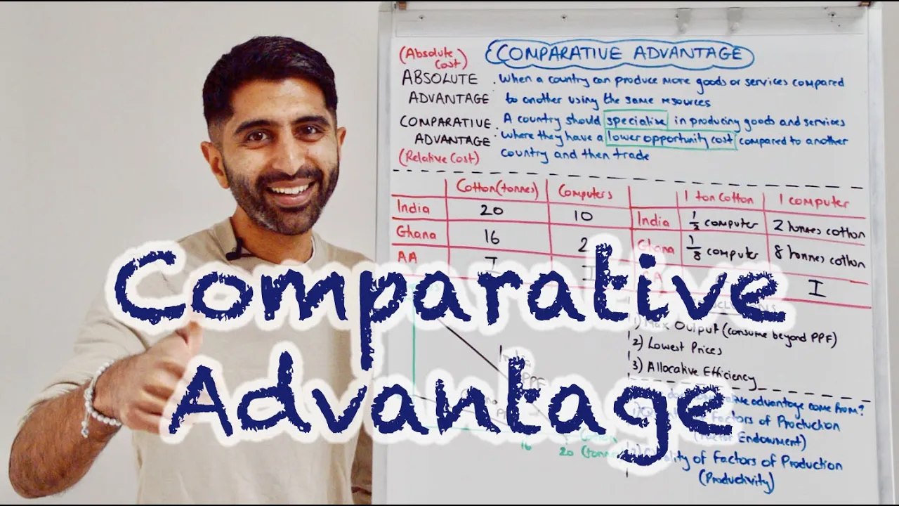 lower but then David Ricardo a British Economist came along in the early 19th century and said this theory is far too simplistic to explain global trade he said the problem with absolute cost is that it doesn't include opportunity cost and opportunity cost is a cost in economics he said we have to factor that in to work out who truly is the lowest cost producer that is called the relative cost of production and then he derived the law of comp comp to Advantage and he was saying look it's possible for countries without absolute advantages to still
